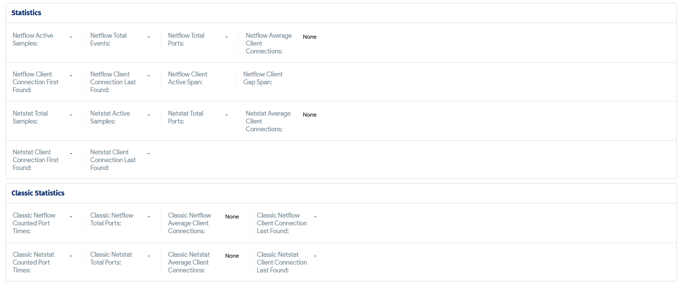 | Netstat Average Client Connections | This is actually a calculated number of Netstat Total Ports / Netstat Active Samples. |