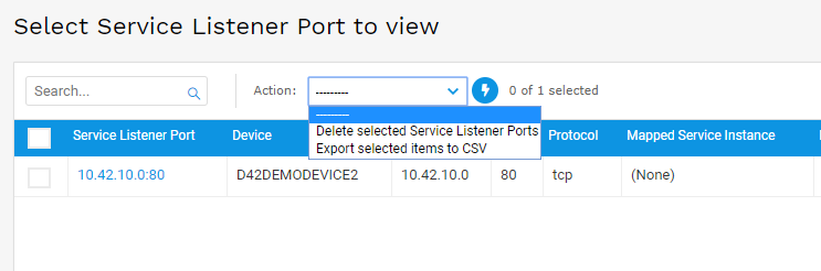 Select one or more listener ports, and then select an Action to apply that action to the listener ports.