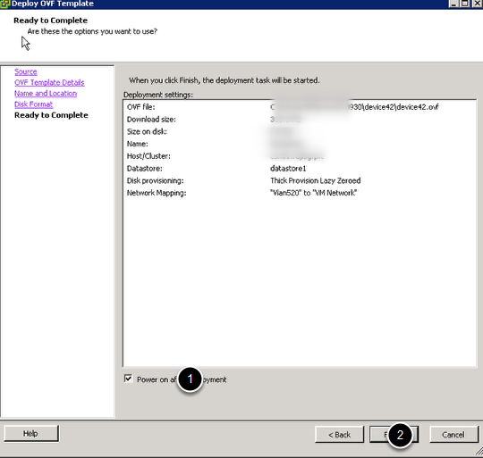 Choose your location, datastore, and NIC by following the VMware prompts, and wait until the import has finished.