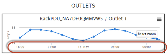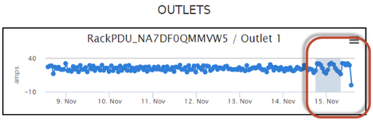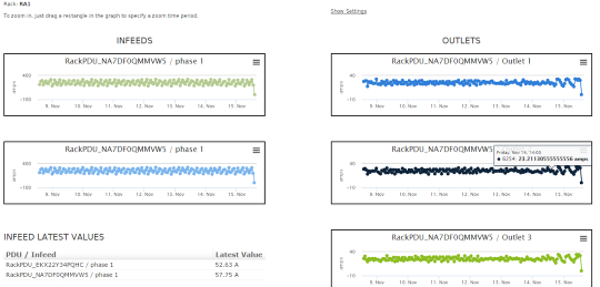 If you click the Power tab for the PDU, you will see tables and graphs showing the historical power details for the in-feeds and outlets.