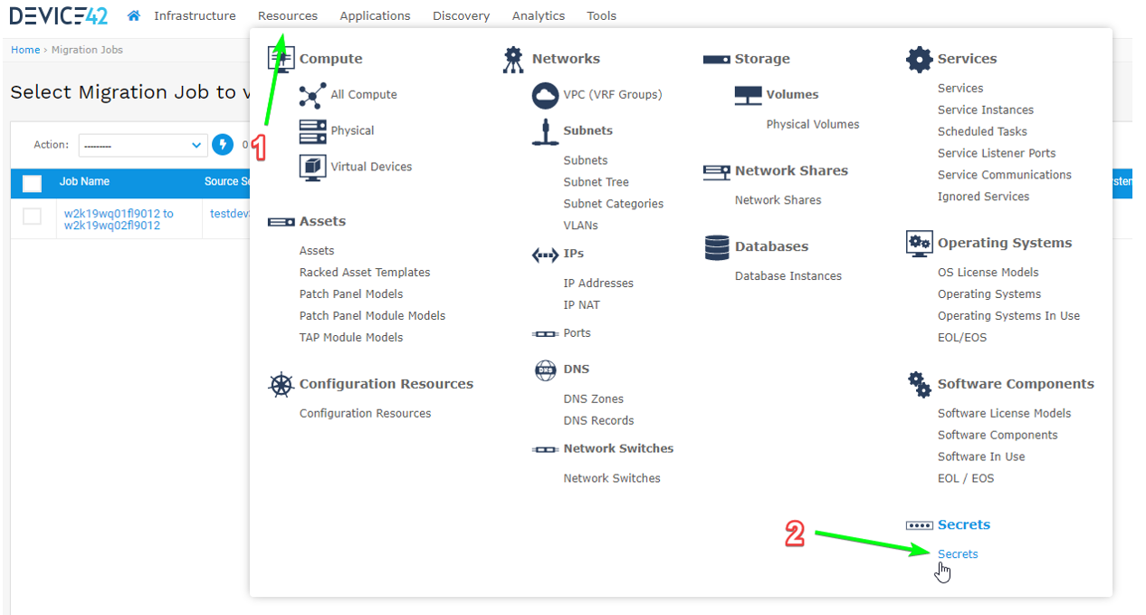 - The process is the same for selecting the Secret, which must first be created in D42 and consist of the username and password on the source and target machines.