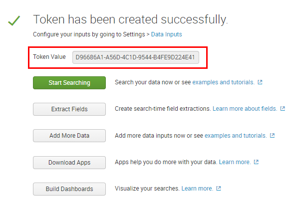 - Review and Submit to create the HEC. This will provide a token value, take note of this but it will be available later if needed.