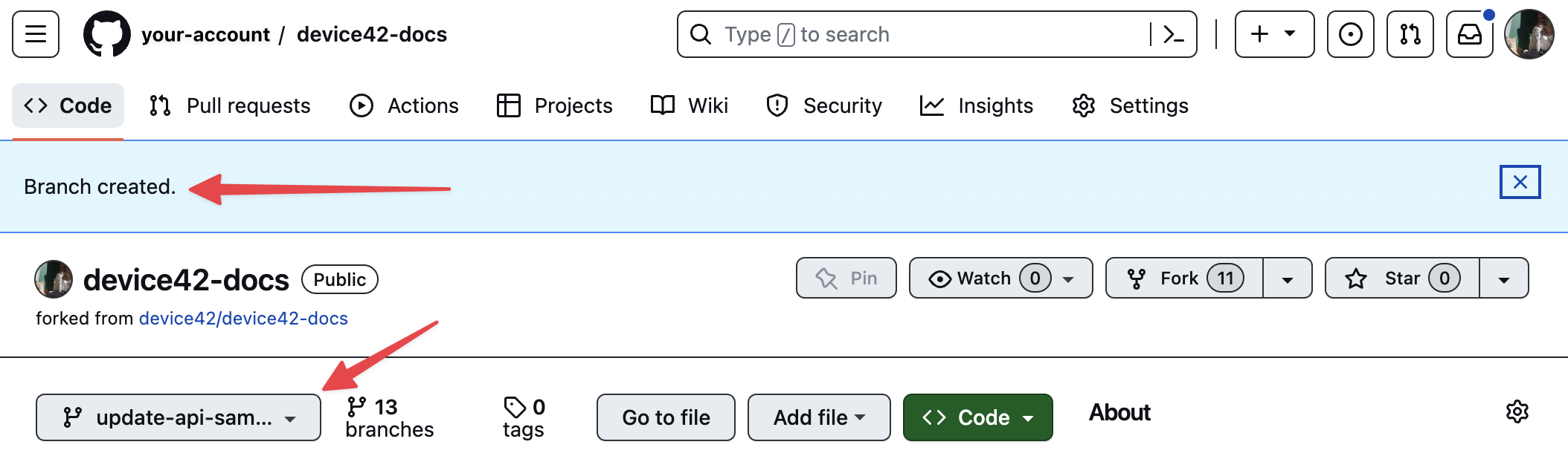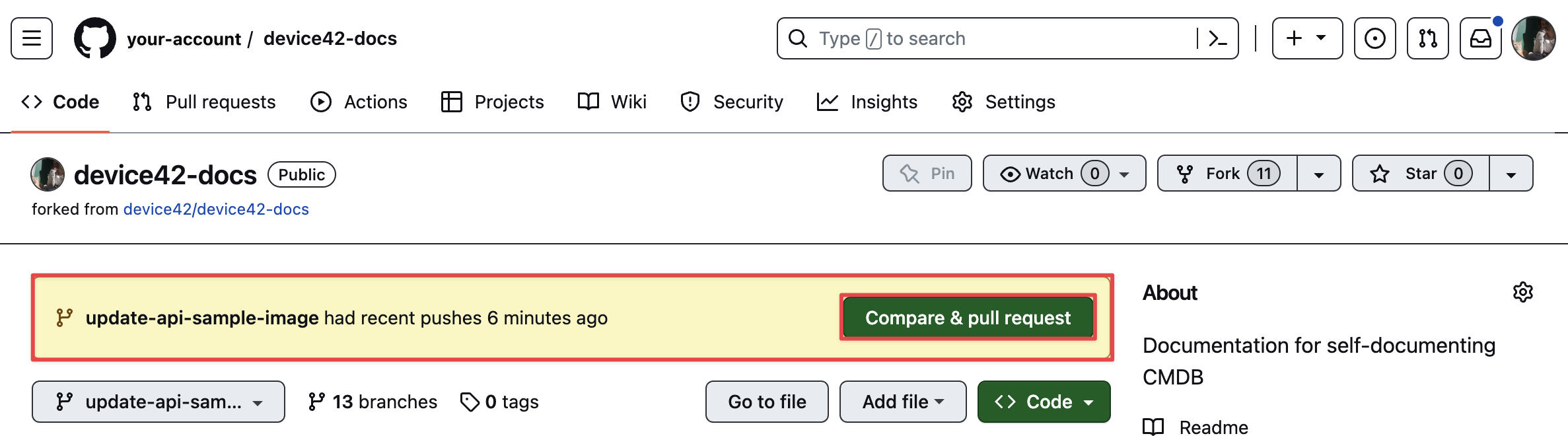 - Fork the Device42 repository OR navigate to your existing forked Device42 repository.