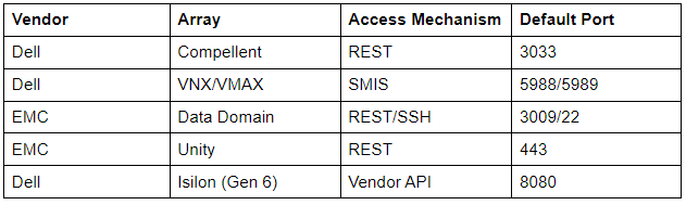 Compellent discovery requires use of an associated Dell Storage Manager appliance.