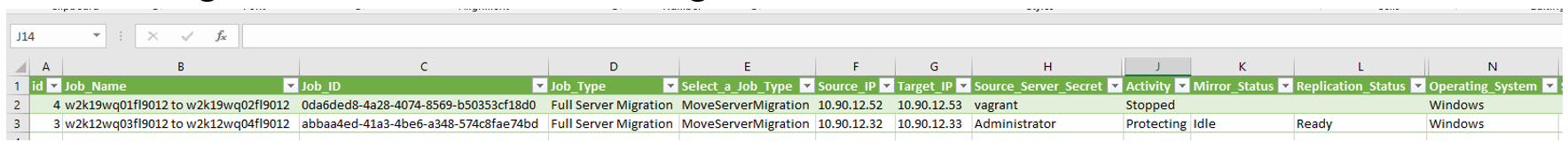 You can export the jobs displayed on the Migration Jobs list page via the Export selected items to CSV Action menu item.