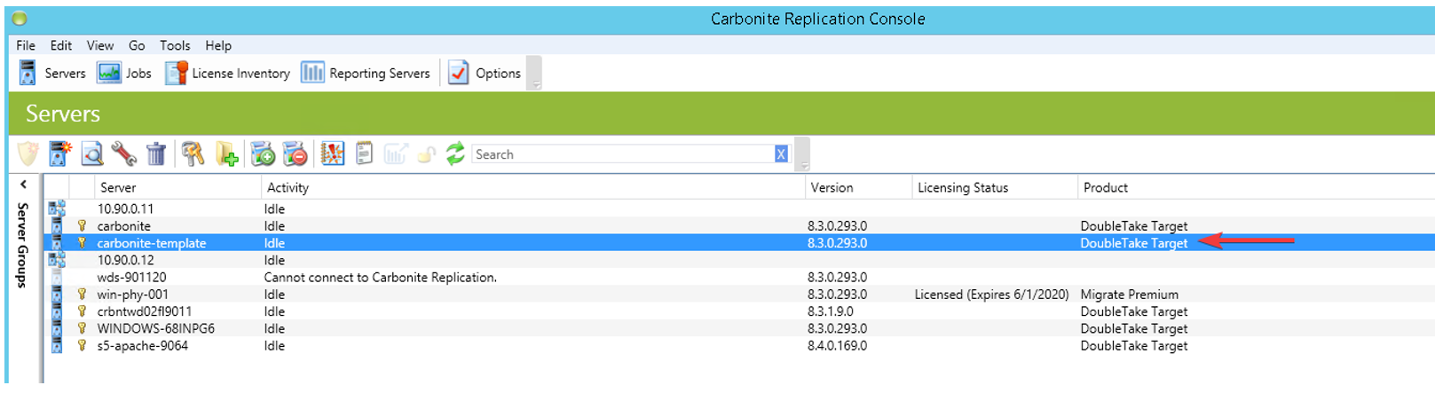 - (Optional) If you require fine tuning of the various created migration job options, more features, or failover trigger configuration, the source and target machines need to have Carbonite Migrate Replication Console installed (usually installed by default during the Carbonite Agent installation process). The machines you want to monitor or control must be added to the Replication console’s Servers list.