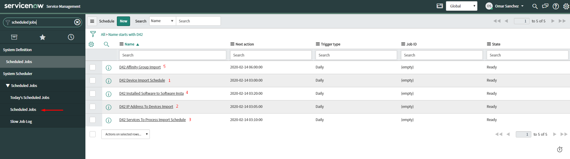 - Run the D42 Device Import Schedule scheduled job to sync device data from Device42 to ServiceNow.