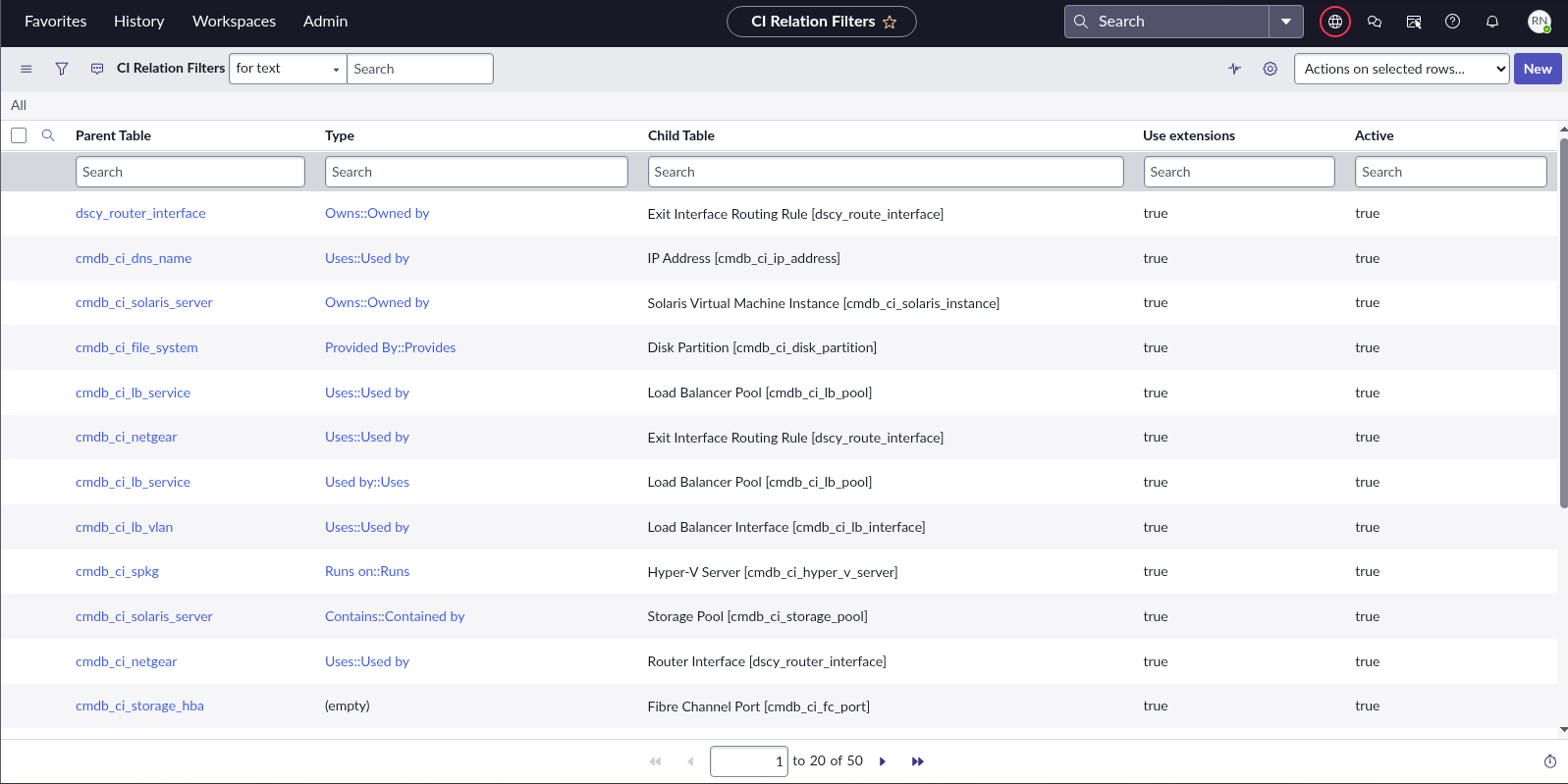 In ServiceNow, you can create and modify existing data sources and set their file paths by modifying the string discussed below to reference the name of your new Device42 saved DOQL query.